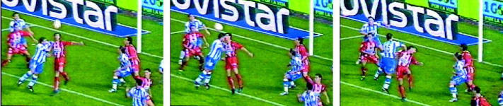 Atléticoは誰もが正当なものだと考えられないようなゴールにより、Riazorでまたしても敗戦を喫した。ゴールを決めたCapdevilaはシュートする直前にValeraに対して明らかな反則を犯していた。しかし審判はその事実を見逃し、Deportivoが勝ち点を奪おうと必死だったAtléticoから勝利をもっていってしまった。しかもこの得点に繋がったコーナーキック自体の判定も非常に怪しいものであった。言い換えればAtléticoは手に入れかけていた勝ち点1をDaudén Ibáñezの手によって奪い取られたとなるだろう。Atléticoは終盤の厳しい時間帯も含めてこの試合はよく耐えていた。守備陣はLeo Francoを中心に合格点が与えられるプレーを見せ、特にLeoは集中力を切らすことなくゴールを守っていた。中盤での戦いは激しかったが、ZahínosやLuccinが相手に多くの自由を与えず、試合をコントロールしようとしていた。 しかしCarlos Bianchiのチームが相手キーパーMolinaへ迫るのに苦労していたことも事実だ。前半で彼を慌てさせたプレーはセットプレーからのプレーだけだった。Fernando TorresはAndradeの執拗なマークにてこずり、相手を脅かすようなプレーをさせてもらえなかった。 チャンスの一つとして挙げられるのがコーナーキックをPabloが頭で合わせた場面だろう。しかしながらこのシュートはMolinaに防がれた。Atléticoは相手ゴールに簡単には近付けさせてもらえず、良い攻撃の形が作れなかった。 Deporは全体的にプレッシャーを掛け、試合を通して戦っていた。特にMunitisのプレーには目を見張るものがあったが、Valeraが踏ん張っていた。Tristánには36分に絶好のチャンスが訪れたが、ゴールかと思えたシュートは寸でのところでLeo Francoが防いだ。しかし前半を総括すると全体的にフォワードが仕事をする場面は多く見られなかった。 後半に入るとAtléticoは修正し、開始早々の46分にはGabiのパスを受けたLuccinがもう少しで先制点を挙げられる場面が見られた。しかしこのチャンスはMolinaの片手に阻まれた。しかしDeportivoも負けじと反撃し、その2分後にはAtléticoを脅かすような攻撃を見せた。MunitisとSergioが相次いでシュートを放ったが、どちらもLeo Francoが防ぎ、得点は許さなかった。 試合がDeportivoのペースで進む中、BianchiはPetrovを投入し、状況の打破を試みた。しかしDeportivo優位の状況は変わらず、Leoのゴールを脅かす攻撃を何度も見せた。しかしいずれもゴールには繋がらなかった。 Atléticoもゴールから見放された場面はあった。72分のFernando TorresのチャンスはMolinaのスーパーセーブに阻まれてしまったからだ。この試合の主役は間違いなく両キーパーだった。そして試合終盤はどちらも決定機を作れないまま時間が流れた。Deporには疲労が見え、Leoを脅かせなくなっていた。しかし最後の最後でCapdevila、そしてDaudén Ibáñezが主役となってしまった。この主審はValeraに対する明らかな反則を見逃し、あさっての方向を見ていた。この結果はRiazorとの相性の悪さが招いたものかもしれないが。 得点経過 1-0, m.94: CapdevilaがSergioのクロスに合わせる 試合後の監督、及び選手のコメント