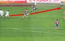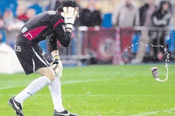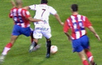 この試合ではあらゆることが起こってしまった。Atlético de Madridは最終的に最少得点差で敗れたのだが、試合はSevillaが先制した直後に観客席から多くの物が投げ入れられる事態に発展したため30分間の中断があった。さらにAtletiは最後は8人しかピッチ上にいないという状態に追い込まれた。また、この試合ではLeo FrancoがP.K.を二度も止めるという活躍もあった。Atléticoにとってこの試合は76分で終了したようなものだった。Atletiはこの時点でLuccinが退場処分を受けたことで一人少なく、さらにその状態でPuertaに先制点を決められたからだ。しかも主審のAyza GámezはSaviolaがオフサイドだったため一旦はゴールを取り消すような判定を下したものの、結局ゴールを認めた。この不可解なゴールの認め方によって観客の怒りは頂点に達し、ピッチ上に物が投げ入れられるという事態が発生した。この状況を見てAyza Gámezは試合を中断し、選手たちを一旦ロッカールームへ引き上げさせた。この30分後に試合は再開されたが、残り15分ほどでAtléticoはさらにPetrovとPereaが立て続けに退場させられてしまい、どうすることもできなかった。 試合の立ち上がりはAtléticoにとって悪くないものだった。トップチームでの初先発を果たしたManu del Moralが10分間で二度チャンスを迎えるなど、攻撃の形を作ることはできていた。しかしながら前半の主役はやはりLeo Francoだろう。主審が二度もSevillaにP.K.を与えたが、KanoutéとSaviolaがそれぞれ放ったP.K.をいずれも止めてしまったからだ。 最初のP.K.は15分で、主審がSaviolaがLuccinに倒されたと判定したことによるものだった。このP.K.を蹴ったのはKanoutéだったが、Leoは一旦シュートを弾き、そのボールはポストに当たり、跳ね返ってきたボールをLeoが再び抑えて失点を防いだ。 二度目のP.K.は思わぬ形で宣告された。今度のはAntonio Lópezの手にボールが当たったことによるもので、主審は迷わずSevillaにP.K.を与えた。今度はSaviolaがP.K.キッカーを務めたが、彼もKanoutéと同じところにシュートを放ち、またしてもLeo FrancoがSevillaのゴールを阻んだ。 しかしながらSevillaの勢いは衰えなかった。この直後には右サイドをDaniel Alvesが単独で突破し、クロスを入れた。しかしSaviolaのシュートをまたしてもLeoが防ぎ、コーナーへと逃れた。このプレーの直後、サポーターからはLeoの名が連呼された。前半終了間際にAtl&eacut;eticoはフリーキックのチャンスを得たが、Antonio Lópezのシュートはわずかに上に外れた。 後半も前半と同じような展開で始まった。SevillaがLeo Francoのゴールを脅かすシーンが二度見られたが、AdrianoとMartíのヘディングはいずれも枠を捕らえられなかった。AtléticoはGallettiのエリア外からのシュートでPalopのゴールを脅かし、跳ね返りをManuがシュートしたが、Palopのファインセーブによって阻まれてしまった。両チームとも先制点を狙って攻撃を積極的に仕掛けたが、なかなか得点には至らなかった。 Atléticoにとって状況が厳しくなったのは、残り時間が20分ある段階でLuccinが退場してからだった。そして数的優位な状況を生かして攻撃を仕掛けたSevillaがPuertaのゴールで先制した。線審はSaviolaがオフサイドポジションに居たため旗を上げ、主審のAyza Gámezも一旦はゴールを取り消すようなアクションを見せたが、結局ゴールを認めた。 このあいまいな判定の仕方が引き金となりピッチに物が投げ入れられ始め、試合が中断することとなった。30分後に再開し、PetrovとPereaが立て続けに退場させられたが、この試合の流れを考えれば最早驚くべきことでもなかったろう。 得点経過 0-1, m.76: Puertaが左サイドから決める |